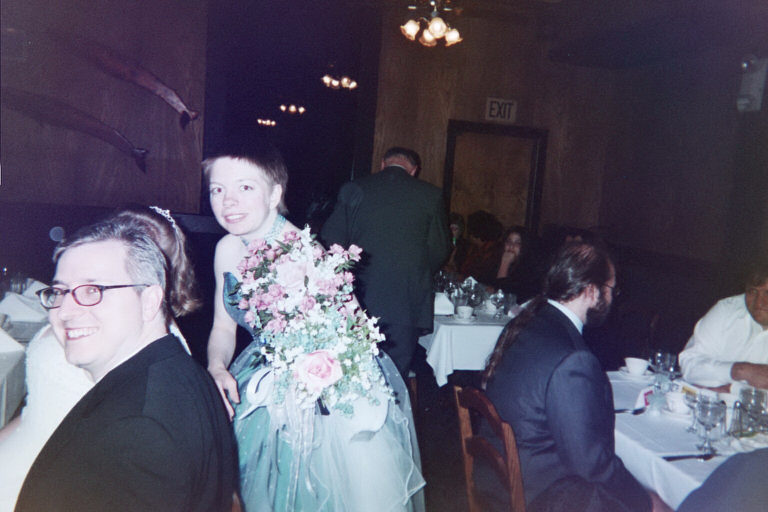 Another shot of Valerie and Sabrina, with our head table in the background. That's Sam and Ana on the end, there.