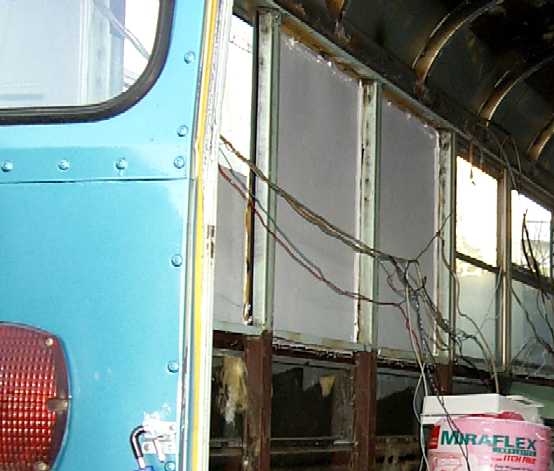 Bus interior post work session sealed primed lift gap welded