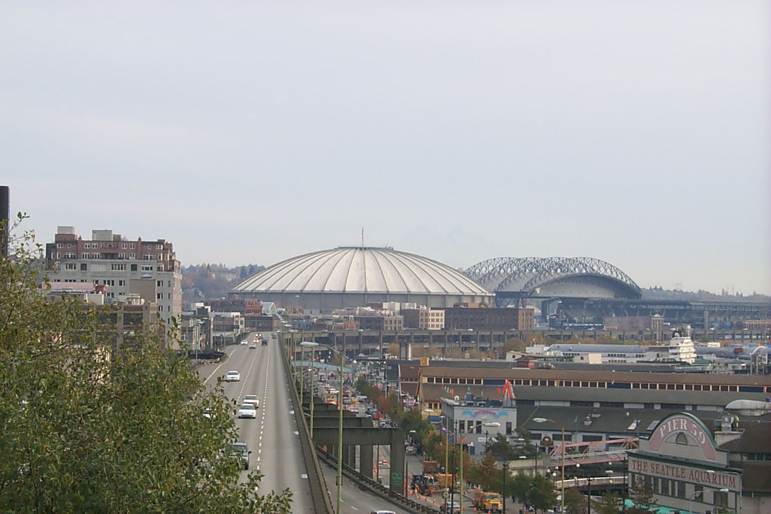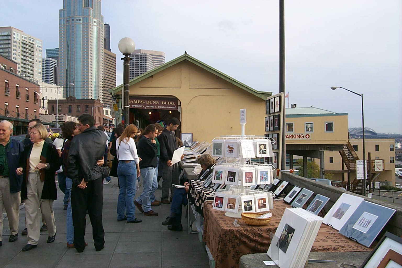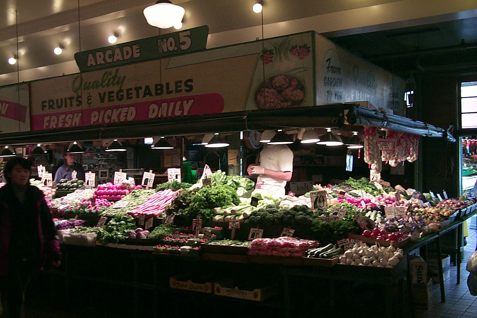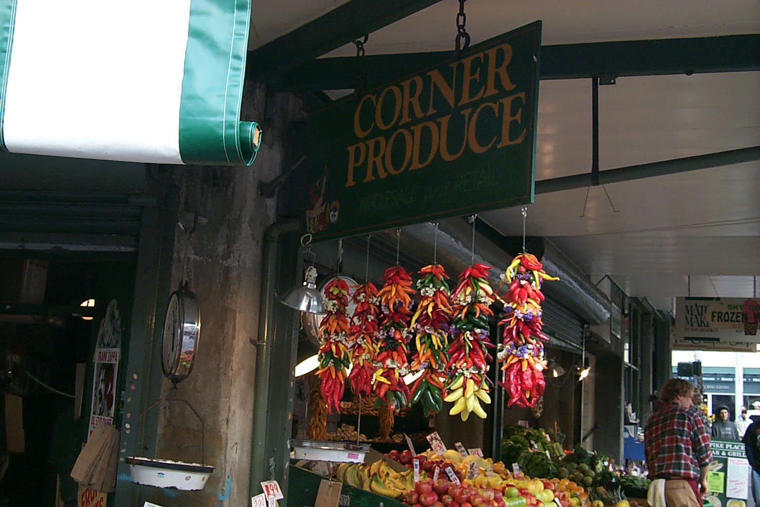 Walked down to Pike's Place Market today-- here's a shot of the outside approach. The hotel (Sheraton) is about 5 blocks down Pike from the market, so you can come in on the top floor without any of the happy hillclimbing that you do from the other direction.